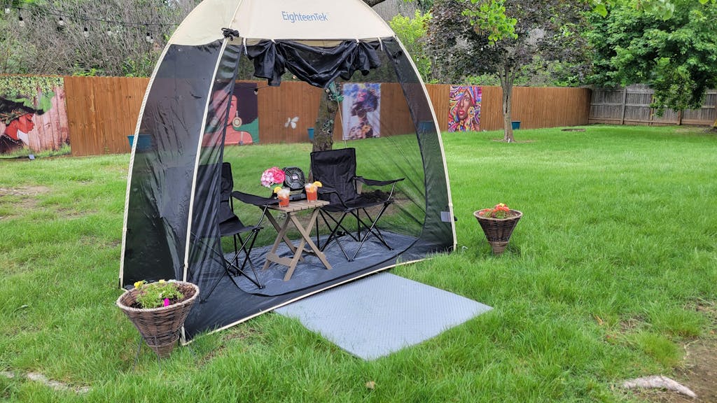Screen out the bugs and let the air in with the Eighteentek screen house tent. This gazebo with extra-trifling mesh netting which can protect you from mosquitoes and other insects, designed for maximum comfort and enjoyment. This screen house tent pops up automatically, no assembly is needed, set up in a second, no need to struggle with the heavy construction. The lightweight and innovative folding method make it easy to fold down, and put it into a compact carry bag, convenient for you to carry and store everywhere. The solid fiberglass frame,sandbags, guylines and metal stakes provide good stability on windy days. From garden parties and afternoon tea time to picnics and camping trips, this pop up screen room for 2-3 person is perfect for any occasion. Create memorable experiences in your backyard or take it along on your outdoor adventures.