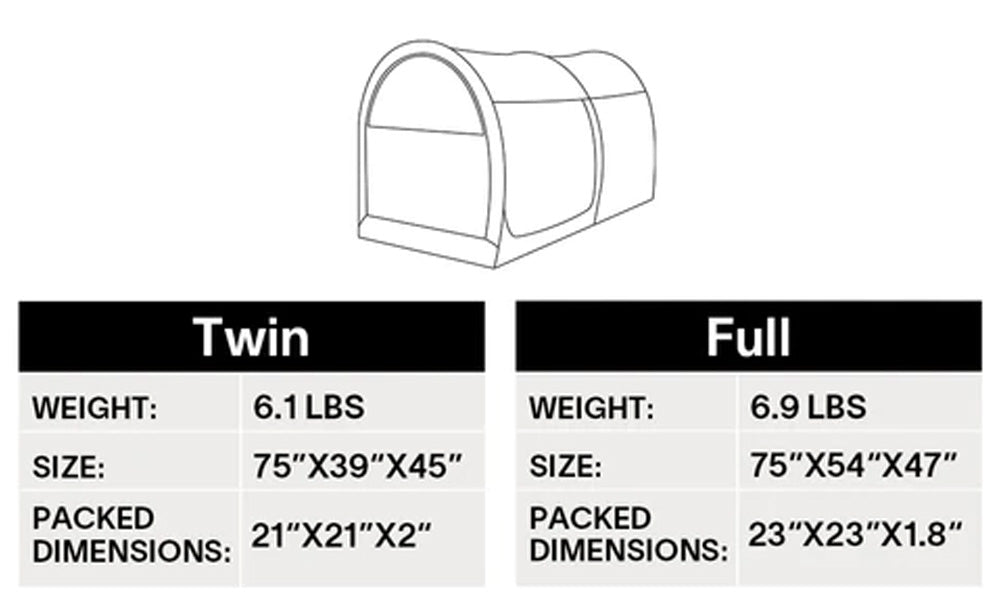 My tent shipped quickly and was pretty easy to set up. It is exactly what I needed to sleep better. My room is a high traffic area so it really helps to have my own “space” my dog loves it too